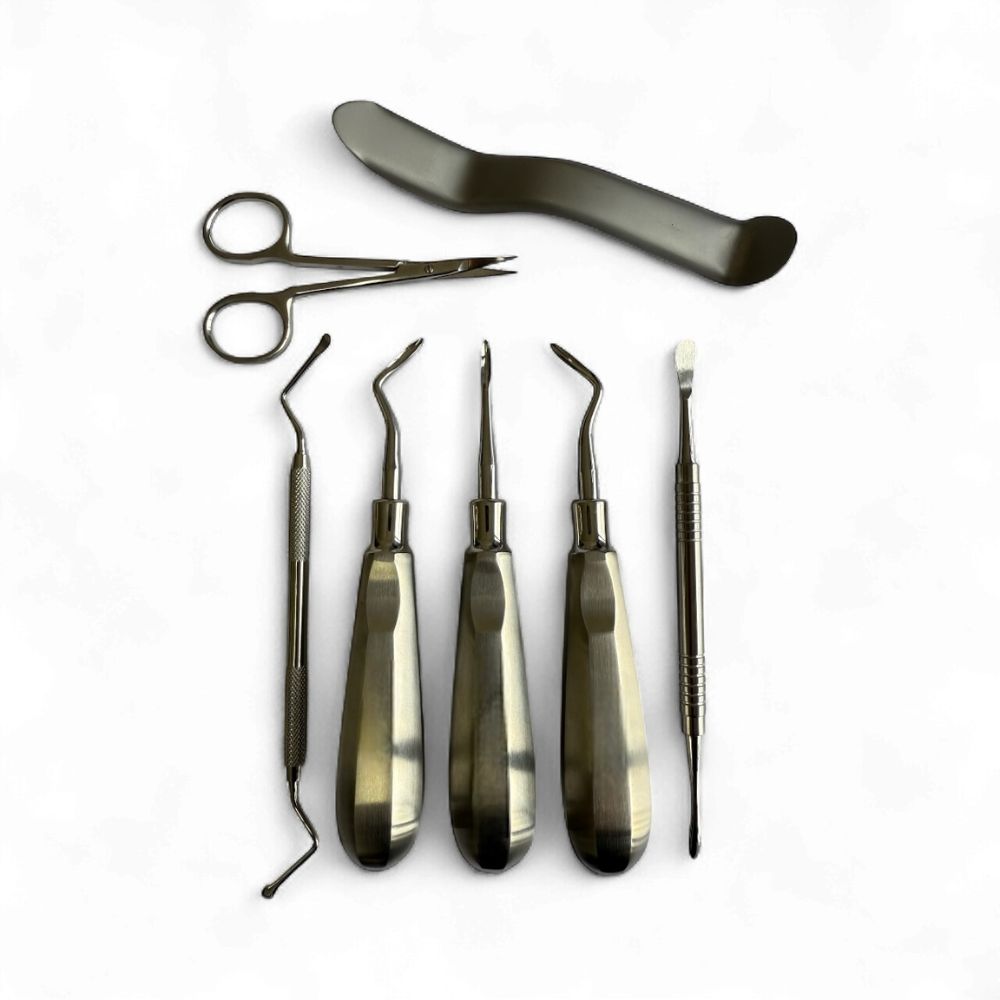 🔹 Os instrumentos possuem pontas projetadas para atuação em diferentes regiões da arcada dentária, proporcionando precisão, controle e segurança durante a extração.